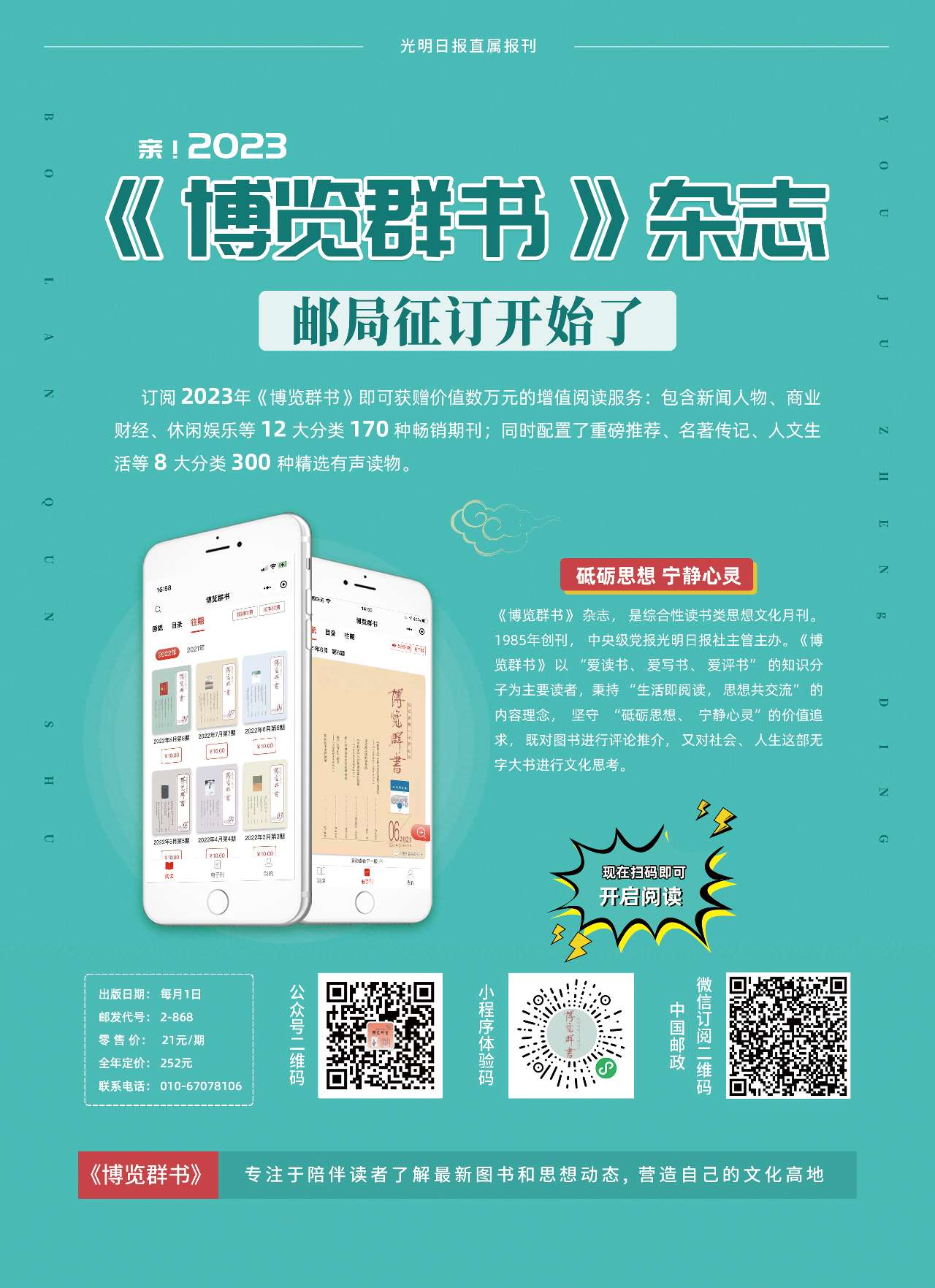 (由北京市報刊發(fā)行局青年團(tuán)隊設(shè)計的《博覽群書》2023年征訂廣告,點(diǎn)擊最后一個二維碼即可完成訂閱)