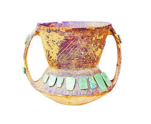 鑲綠松石回紋彩陶罐 四壩文化 甘肅省文物考古研究所藏