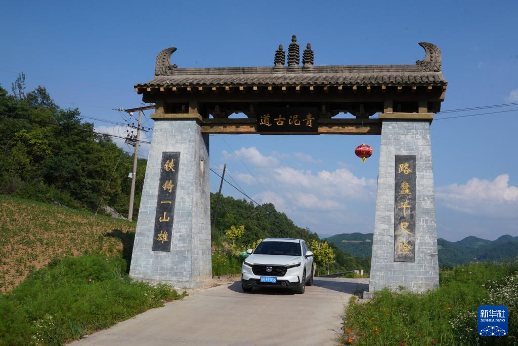 7月14日,一輛汽車行駛在青泥嶺上的鄉(xiāng)村道路上。新華社記者 馬寧 攝