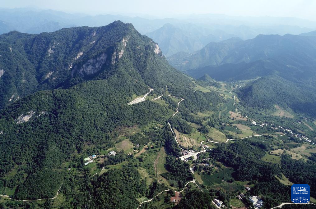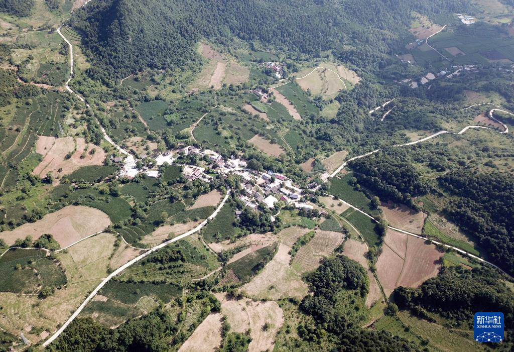 7月14日拍攝的青泥嶺上的村莊和鄉(xiāng)村道路(無人機照片)。新華社記者 馬寧 攝