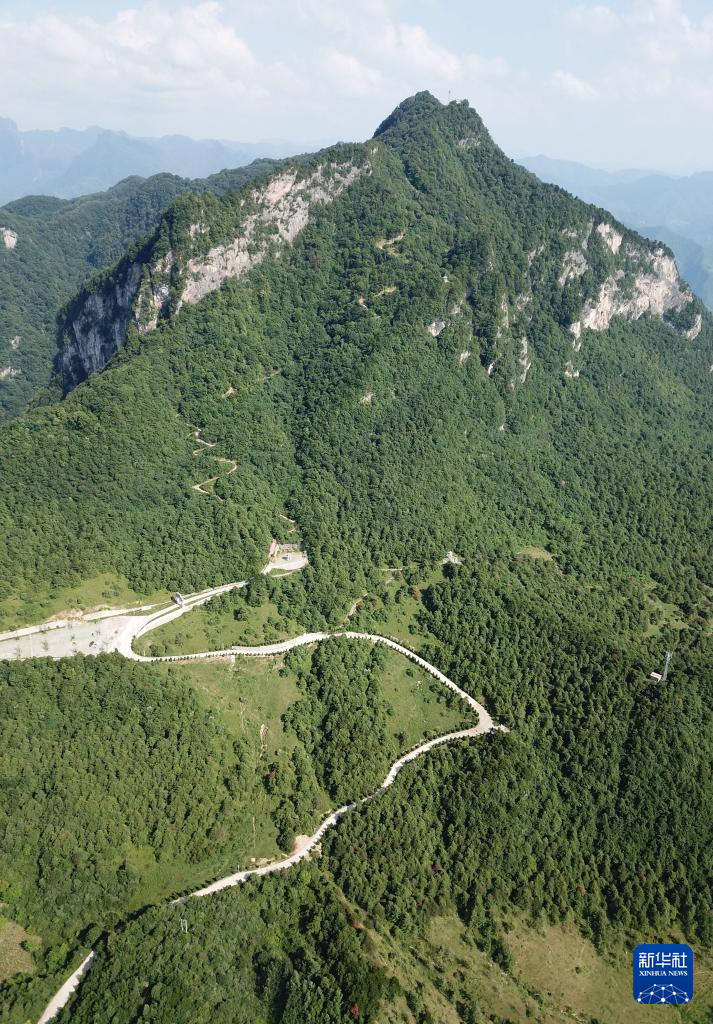 7月14日拍攝的青泥嶺主峰鐵山和鄉(xiāng)村道路(無人機照片)。新華社記者 馬寧 攝