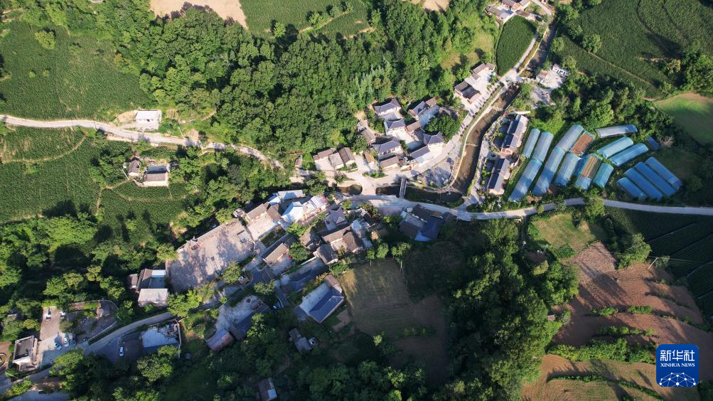 7月14日拍攝的青泥嶺腳下的青泥村(無人機照片)。新華社記者 陳斌 攝