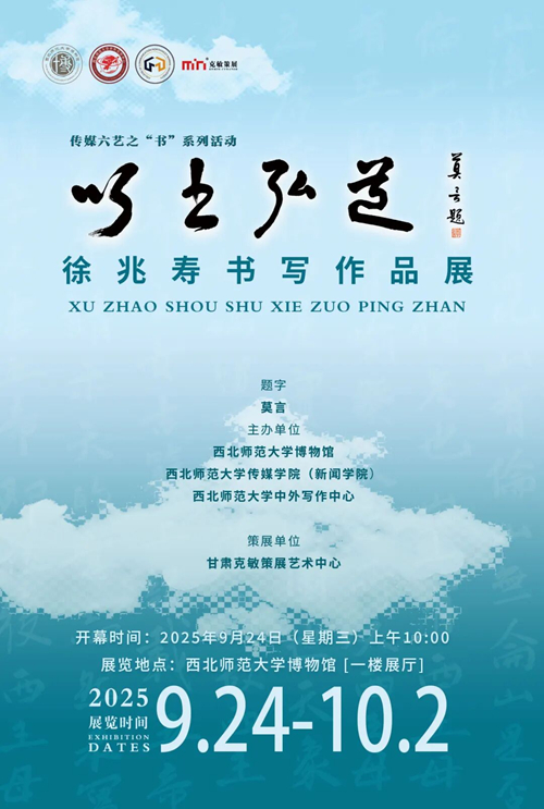 9月26日,“以書弘道——徐兆壽書寫作品展”在西北師范大學(xué)開展,徐兆壽邀請(qǐng)著名國(guó)學(xué)家樓宇烈,著名書法家連輯,著名作家和學(xué)者莫言、賈平凹、李敬澤、歐陽江河、劉醒龍、劉亮程、徐則臣、陳福民、謝有順,以及甘肅省著名作家王登渤、王正茂、葉舟、馬步升、楊光祖等助陣,向全社會(huì)發(fā)出書寫經(jīng)典,傳承文脈的倡議,產(chǎn)生極大的社會(huì)反響。