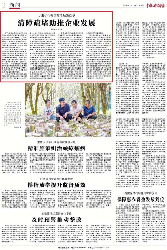 甘肅省各級紀(jì)檢監(jiān)察機(jī)關(guān)持續(xù)拓寬監(jiān)督路徑,通過建立營商環(huán)境監(jiān)測點(diǎn)、定期實地走訪等方式,及時了解企業(yè)訴求,全面收集匯總、交辦處置、跟蹤督辦,堅決糾治消極應(yīng)付、冷硬橫推、敷衍塞責(zé)等現(xiàn)象,整治形式主義、官僚主義問題。