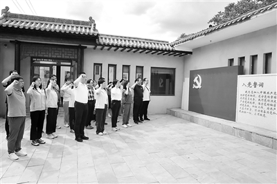 近日,山西省紀委監(jiān)委機關部分黨員在晉綏八分區(qū)(專署)舊址開展“傳承紅色基因,砥礪初心使命”主題黨日活動。圖為黨員重溫入黨誓詞。王鵬波 攝