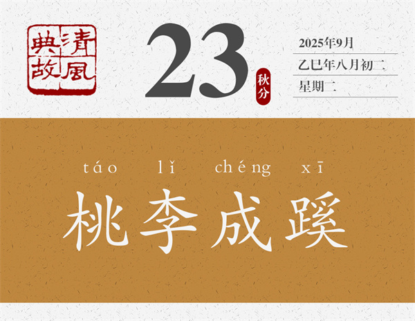 “桃李不言,下自成蹊”雖為俗語(yǔ),但與孔子的話不謀而合。不令而行者,不言而成蹊者也。“桃李不言”呼應(yīng)“不能道辭”,“下自成蹊”呼應(yīng)“皆為盡哀”。“此言雖小,可以喻大”是說(shuō),這句俗語(yǔ)雖然言淺意近,卻能用它來(lái)說(shuō)明許多大道理。后人遂以“桃李不言,下自成蹊”或“桃李成蹊”為典,比喻一個(gè)人只要品德高尚,行為端正,自然會(huì)贏得人們的愛(ài)戴和追隨。辛棄疾詞《一剪梅·游蔣山呈葉丞相》:“多情山鳥(niǎo)不須啼。桃李不言,下自成蹊。”南朝齊人謝朓詩(shī)《和徐都曹出新亭渚詩(shī)》:“桃李成蹊徑,桑榆蔭道周。”