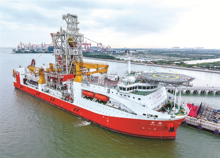 “十四五”時(shí)期,我國持續(xù)加強(qiáng)關(guān)鍵核心技術(shù)攻關(guān)和成果應(yīng)用,加快高端裝備、先進(jìn)制造等領(lǐng)域關(guān)鍵技術(shù)攻關(guān),推動(dòng)傳統(tǒng)產(chǎn)業(yè)向高端化、智能化、綠色化轉(zhuǎn)型。圖為擁有最大11000米的鉆深能力、我國自主設(shè)計(jì)建造的首艘大洋鉆探船“夢想”號(hào),該船于“十四五”時(shí)期正式入列(資料圖片)。新華社記者 劉大偉 攝