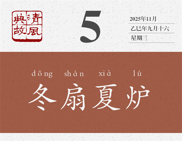 以冬進(jìn)爐,以夏奏扇,明明是違背常識的事,為什么還有人喜歡做呢?所以,后世即以“冬扇夏爐”為典,形容一個人的言論或行動不合時宜,不切實際。清人張祥齡《詞論》:“左春右秋,冰蟲之見,生今反古,是冬箑(shà)夏爐,烏乎能。”箑,扇子。揚雄《方言》:“自關(guān)而東謂之箑,自關(guān)而西謂之扇。”