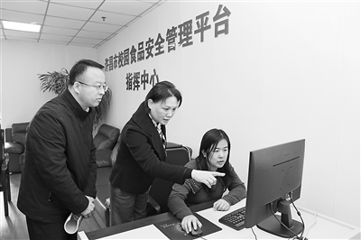 河南省許昌市紀(jì)委監(jiān)委堅持標(biāo)本兼治,通過分域?qū)嵤⑾到y(tǒng)推進(jìn),整合監(jiān)督力量、提升基層監(jiān)督效能。圖為近日,該市紀(jì)委監(jiān)委駐市教育局紀(jì)檢監(jiān)察組干部在市教育局了解校園食品安全管理平臺運(yùn)行及監(jiān)管情況。牛原 攝