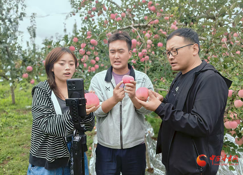 果園里,團隊又開始了新一輪直播,年輕主播手捧一顆嘎啦蘋果仔細(xì)講解,后臺訂單提示音此起彼伏。