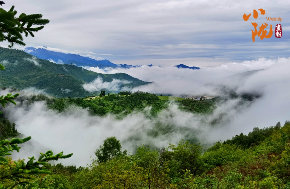 雨后,近處的山巒,青翠欲滴,山間云霧繚繞,如同一條條白色的絲帶,纏繞在山腰間,時而聚攏,時而散開,時而漫過山頂,讓遠山如海中仙島。