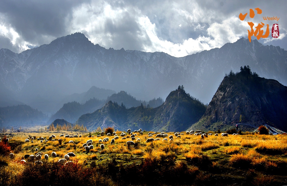 在這如詩(shī)如畫的風(fēng)景中,陽光灑滿山間。遠(yuǎn)處,群山環(huán)抱,云遮霧繞,景致壯觀。近處,羊兒悠然自得地覓食,為這片金黃的土地增添了幾分生機(jī)與活力。