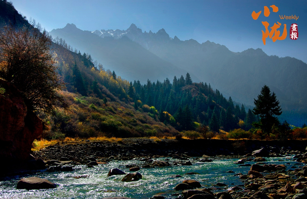 河水如鏡,溪流潺潺,天空澄碧,遠(yuǎn)山在云霧中若影若現(xiàn),與那些染上金黃、橙紅的樹木相互映襯,共同繪制成一幅光影交織、動(dòng)靜相宜的秋日?qǐng)D景。