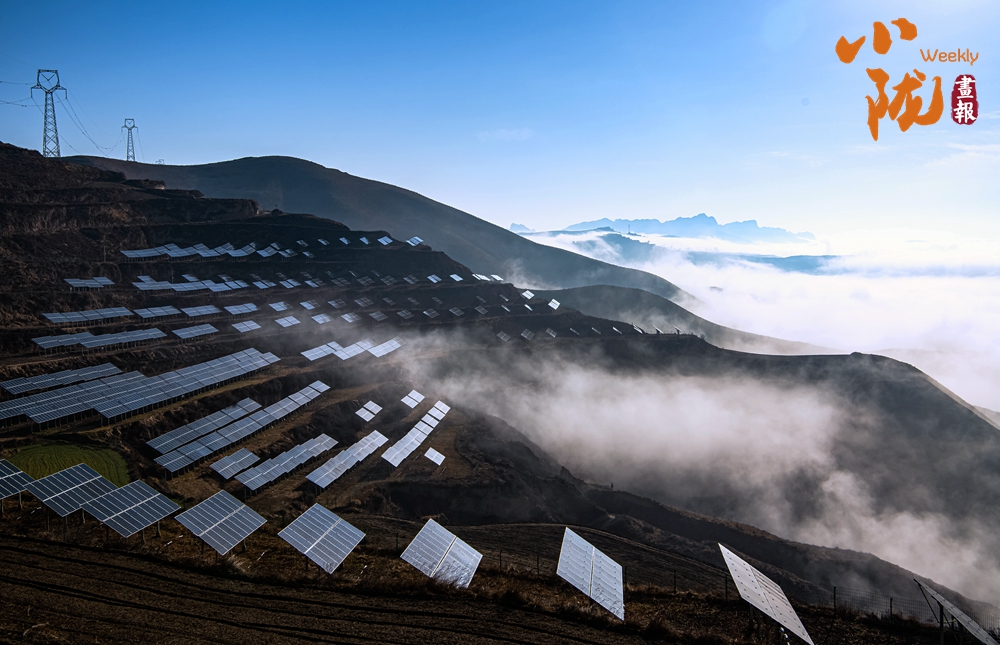 成排的太陽(yáng)能光伏電板如藍(lán)色鱗片,鱗次櫛比地鑲嵌在山坡上,與天際悠悠的流云、遠(yuǎn)處起伏的山巒相映成趣??萍贾琅c自然之韻在這里悄然融合,共同繪就出一幅綠色發(fā)展新畫(huà)卷。