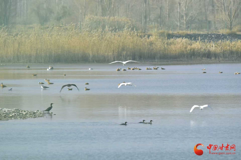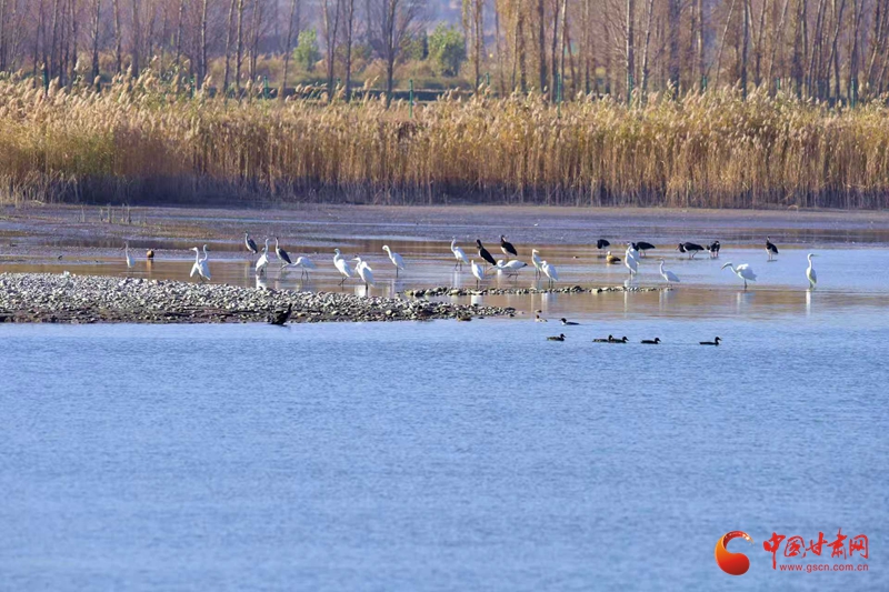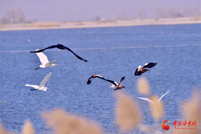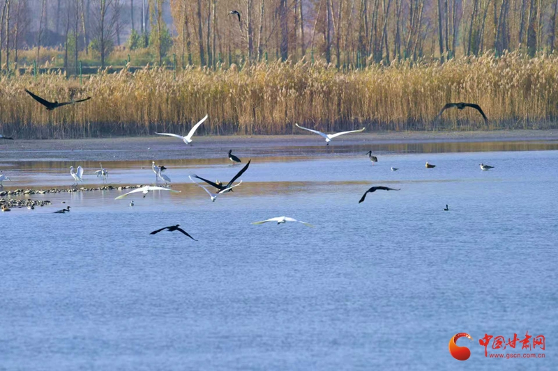 11月10日,初冬寒意漸濃,臨澤流沙河景區(qū)與雙泉湖水庫(kù)蘆葦叢間,響起遷徙鳥(niǎo)類(lèi)的“集結(jié)號(hào)”。潔白的白鸛舒展雙翼、翩躚飛舞,成群麻鴨、鸕鶿緊隨而至,齊聚水域與葦蕩之間,為初冬景致添上靈動(dòng)一筆,引得市民游客駐足抓拍。