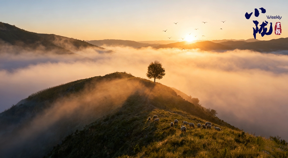 晨光初露時(shí),薄霧浮動(dòng)于溝壑之間,黃土塬的輪廓在光線(xiàn)中起伏,與飛翔的鳥(niǎo)兒、走過(guò)坡地的羊群與塬面草色,構(gòu)成一幅絢麗的畫(huà)卷。