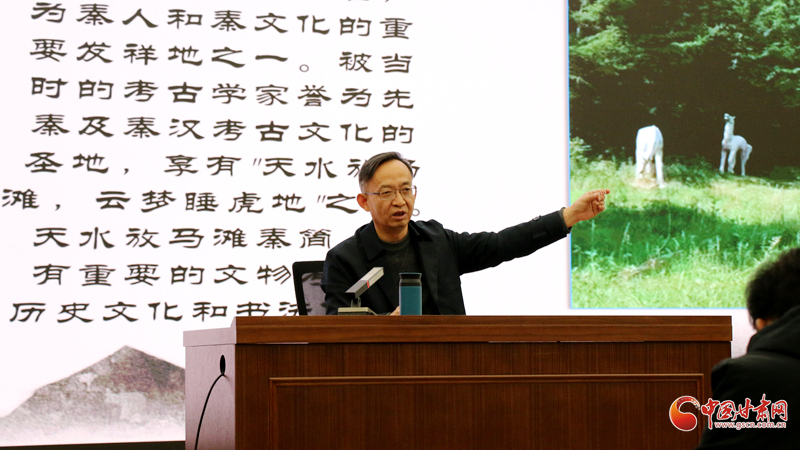 中國甘肅網(wǎng)12月12日訊(西北角·中國甘肅網(wǎng)記者 趙滿同)12月11日下午,“天水放馬灘秦簡歷史文化及書法價值探賾”專題講座在蘭州大學(xué)榆中校區(qū)舉行。天水師范大學(xué)特聘教授王振宇受邀主講,帶領(lǐng)母校蘭州大學(xué)歷史文化學(xué)院二百余名師生穿越歷史時空,深入解讀放馬灘秦簡這一秦文化瑰寶的歷史文化內(nèi)涵與書法藝術(shù)價值。