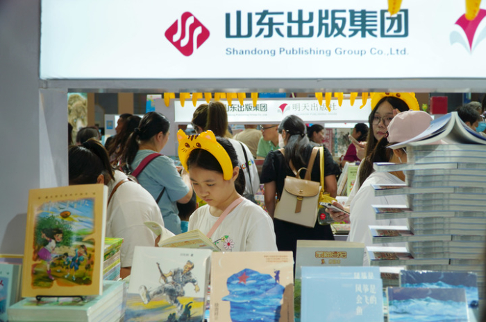 正值暑假,書(shū)博會(huì)上少兒類(lèi)圖書(shū)最受青睞。二十一世紀(jì)出版社集團(tuán)攜近千種圖書(shū)參展,設(shè)置“大中華尋寶記”和“世紀(jì)繪本館”主題展館,吸引眾多目光。暢銷(xiāo)書(shū)“大中華尋寶記”系列新書(shū)和文創(chuàng)產(chǎn)品一經(jīng)亮相便售罄,備受小讀者喜愛(ài)。