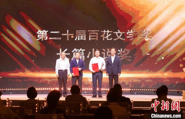 9月19日,第二十屆百花文學(xué)獎(jiǎng)?lì)C獎(jiǎng)典禮在天津舉辦。 圖為長(zhǎng)篇小說(shuō)獎(jiǎng)?lì)C獎(jiǎng)儀式。 中新社記者 王在御 攝