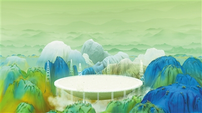 近年來,國(guó)風(fēng)雅韻成為審美新風(fēng)尚。以《千里江山圖》為代表的青綠山水,啟示美術(shù)工作者在服裝設(shè)計(jì)、工藝美術(shù)、舞臺(tái)藝術(shù)等領(lǐng)域開拓創(chuàng)新。在2022年北京冬奧會(huì)花樣滑冰團(tuán)體賽冰舞自由舞比賽中,一對(duì)中國(guó)選手演繹了花滑版《只此青綠》,男選手的服裝上繪有“青峰疊嶂”,女選手的衣裙則如“綠水浮云”,隨著冰鞋滑動(dòng),青綠相映,剛?cè)峒鏉?jì),藝術(shù)之美與競(jìng)技之美相交融。2023年杭州亞運(yùn)會(huì)開幕式上,北京服裝學(xué)院教授楚艷領(lǐng)銜設(shè)計(jì)的“水天碧”長(zhǎng)裙,以漸變的青綠色彩、3D復(fù)合工藝制作的亭臺(tái)樓閣和樹木紋樣,讓“千里江山圖”的意境隨著舞步緩緩生發(fā)。這些實(shí)踐表明,越來越多的美術(shù)工作者創(chuàng)新思維、拓展視野,用當(dāng)代審美激活傳統(tǒng)文化基因。
