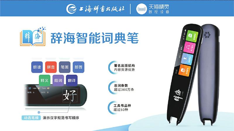為了更好地適應(yīng)用戶在紙質(zhì)閱讀過程中的快速查檢需求,辭書社經(jīng)過數(shù)年設(shè)計研發(fā),于2022年9月推出辭海智能詞典筆。詞典筆充分依托聚典平臺積累的海量內(nèi)容資源,將1.6億字裝進一支詞典筆,內(nèi)置詞條達到了300余萬條,收錄了《辭?!罚ǖ谄甙妫┖汀洞筠o海》《漢語大詞典》《英漢大詞典》《世紀漢英大詞典》等國家級標志性工具書,整合《現(xiàn)代漢語大詞典》《現(xiàn)代漢語規(guī)范詞典》《中國成語大辭典》《同義詞、反義詞大詞典》等精品工具書,讓用戶每次都能夠查有所得。同時,詞典筆實現(xiàn)掃讀結(jié)果1秒呈現(xiàn),并融合數(shù)字智能技術(shù),集掃描查詢、語音助手、聽力練習(xí)、語音翻譯、口語測評、數(shù)碼錄音、生詞本、文本摘抄等八大功能于一體,實現(xiàn)一筆多用。