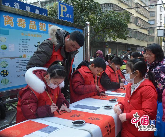 據(jù)悉,當(dāng)天的活動(dòng),“小書(shū)法家”們共為過(guò)往群眾書(shū)贈(zèng)春聯(lián)和“福”字100余幅。