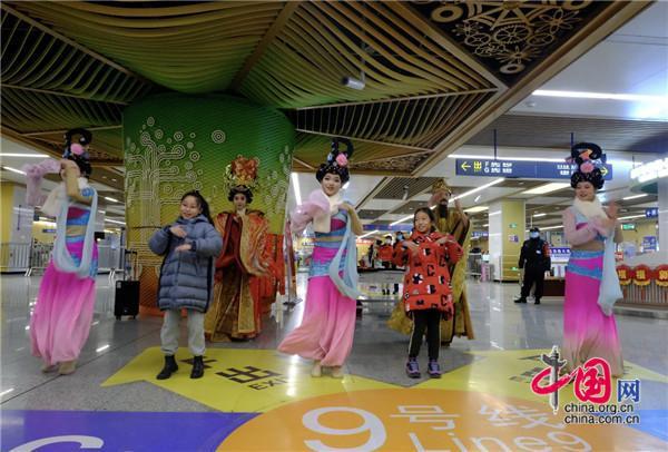2020年底,西安地鐵9號(hào)線開(kāi)通之際,華清池站帝妃攜仕女表演的《霓裳羽衣舞》,秦王攜眾臣高呼“我們有地鐵了”的聲音依舊回旋耳邊。時(shí)值龍年新春佳節(jié),廣大乘客在乘坐安全舒適西安地鐵9號(hào)線的同時(shí),將再次有機(jī)會(huì)在地鐵車站和地鐵列車上來(lái)一場(chǎng)“秦唐”文化的穿越之旅。