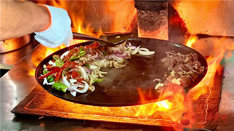而隨著山丹炒撥拉名氣越來越大,這款圍爐而坐的美食成為越來越多游客的心頭好。王金秀說,以前她們擺地攤賣,雖然條件艱難,但是食客從來不挑剔?,F(xiàn)在時代進步了,她也有了自己的示范店,在寬敞明亮的新店,變的是環(huán)境,不變的依然是滋啦冒油的熱情,和朋友圍坐的愜意。對于這種用餐氛圍感拉滿的美食,作為傳承人他們也非常在乎食客的體驗感,所以炒制過程全程開放,讓食客看著大火淬煉的美食一步步成型。