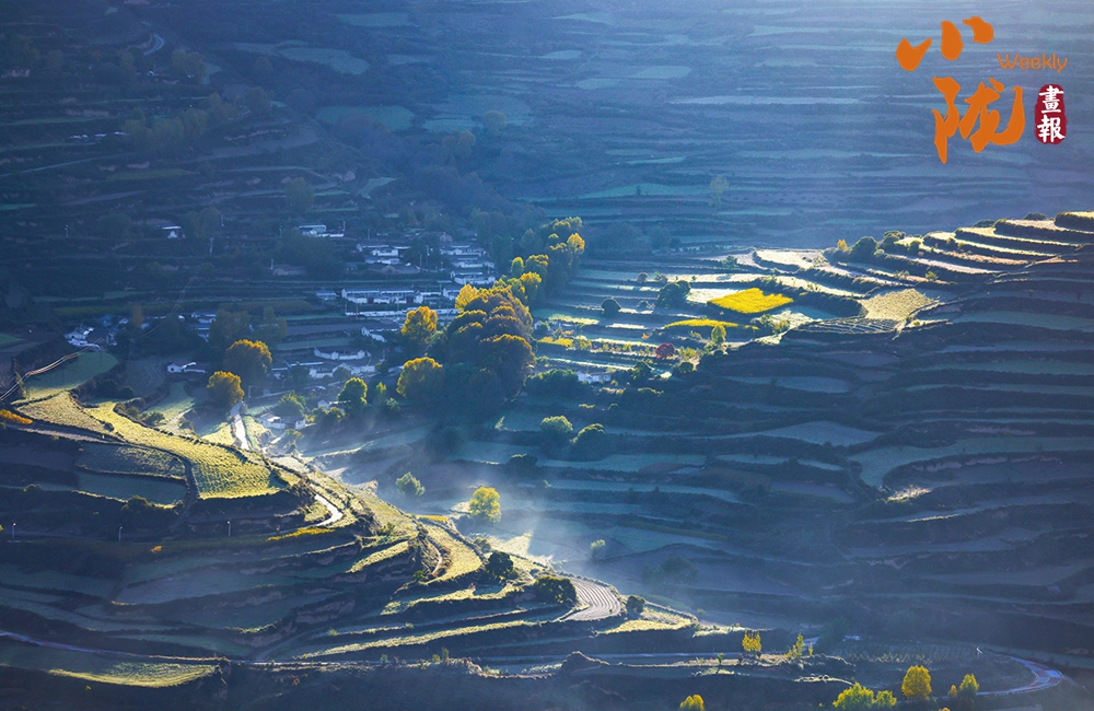 秋末初冬,多彩秋色映照著美麗的臨潭。五彩斑斕的梯田縱橫交錯(cuò)、順山而變,宛如一條條彩帶,在山間飛舞。村落點(diǎn)綴其間、古樸自然,田園生活詩(shī)意盎然。