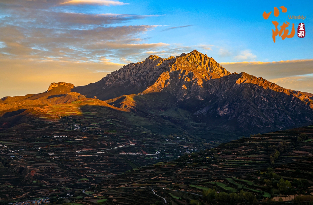 夕陽(yáng)的余暉照在山頂,這種光影交錯(cuò)的效果,為山巒增添了神秘感。山腰以下則林木蔥籠,色彩斑斕,村落依山傍水、古樸自然,像一幅被歲月輕輕展開的水墨長(zhǎng)卷。